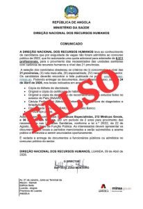 Circula nas redes sociais e grupos do WhatsApp um suposto documento atribuído ao Ministério da Saúde de Angola, indicando que, devido à falta de vagas no concurso público de 2022, teria sido autorizada uma quota adicional para admissão de 6.511 profissionais em todas as províncias do país.