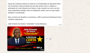 Tem circulado nas redes sociais e em algumas plataformas informativas a alegação de que o actual ministro da Defesa Nacional, Antigos Combatentes e Veteranos da Pátria, João Ernesto dos Santos, terá anunciado a sua pré-candidatura à liderança do MPLA.