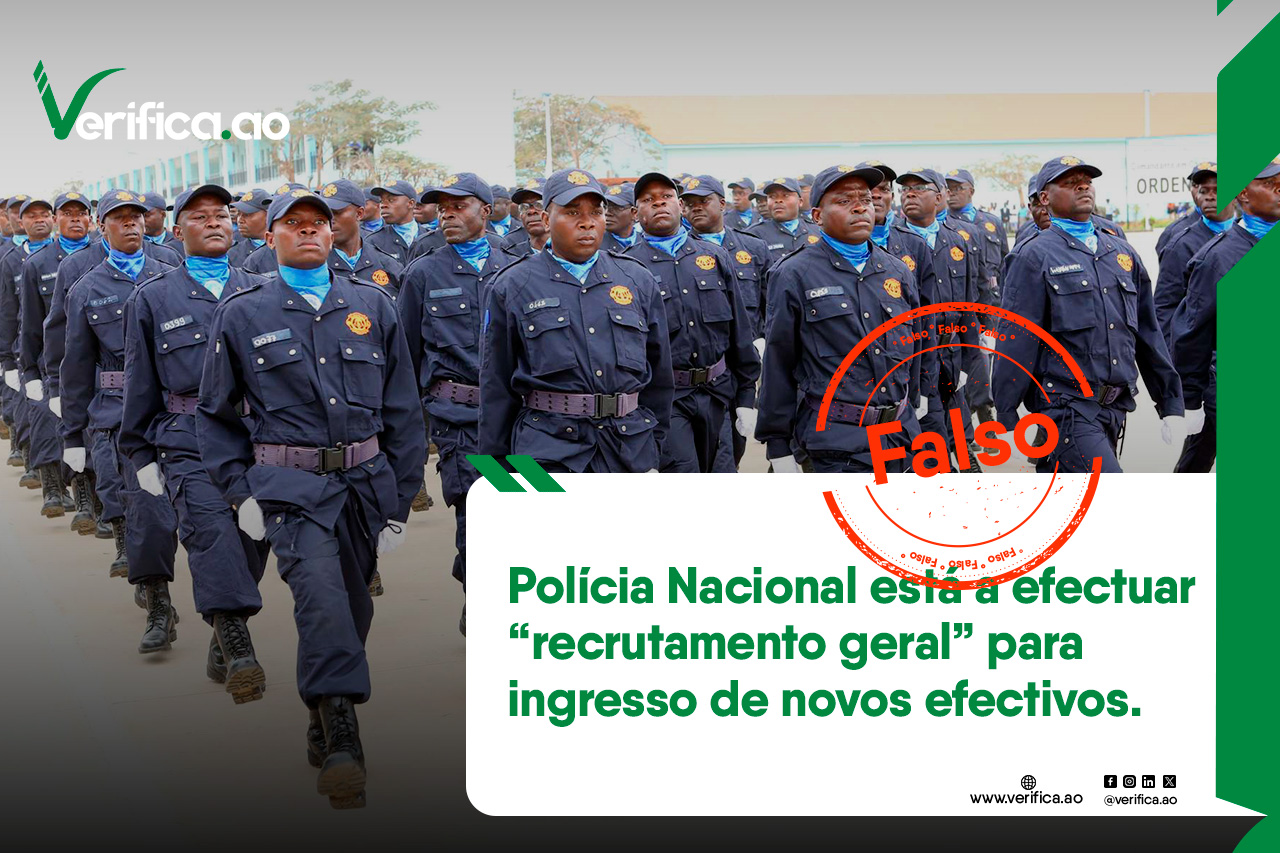 Nos últimos dias, tem circulado nas redes sociais e em diversos grupos de WhatsApp e Facebook uma mensagem que anuncia um suposto recrutamento geral da Polícia Nacional de Angola, alegadamente aberto a todos os interessados.